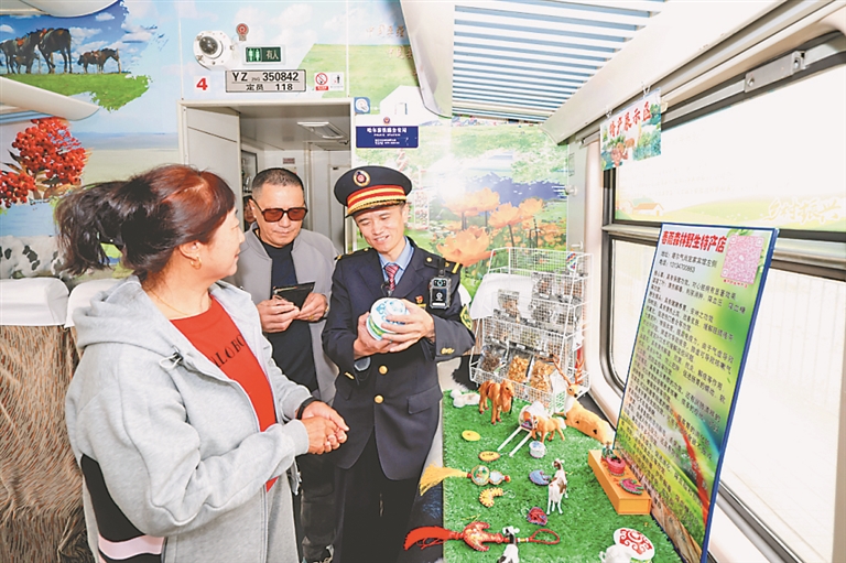 “咱们车上这个山货特产展示区也太方便了,我正好要买点特产带给我闺女呢!”5月28日,从新绰源乘坐6237次列车去海拉尔看望女儿的王凤玉通过列车增设的特产展示区上的信息,很快找到了。