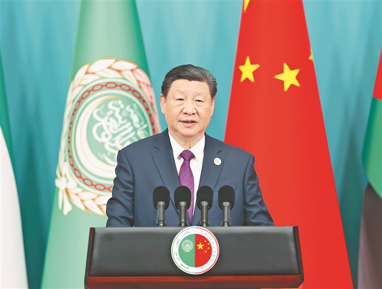 习近平指出,中国和中国人民同阿拉伯国家和人民的友谊,缘自丝绸古道上的友好往来、争取民族解放时的并肩战斗、国家建设进程中的合作共赢。新世纪以来,中阿关系不断迈上新台阶。2022年12月,我赴沙特利雅得出席首届中阿峰会,中阿双方一致同意全力构建面向新时代的中阿命运共同体。中方愿同阿方发挥好峰会战略引领作用,持续推动中阿关系跨越式发展。中方将于2026年在中国举办第二届中阿峰会,相信这将成为中阿关系又一座里程碑。