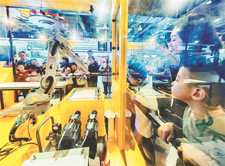 “六一”期间,科技馆内开展了创意智能绘画、正负电荷奇遇记、奇妙光之旅等丰富多彩的科普活动。在玩乐的过程中,孩子们可学会更多的科技知识。