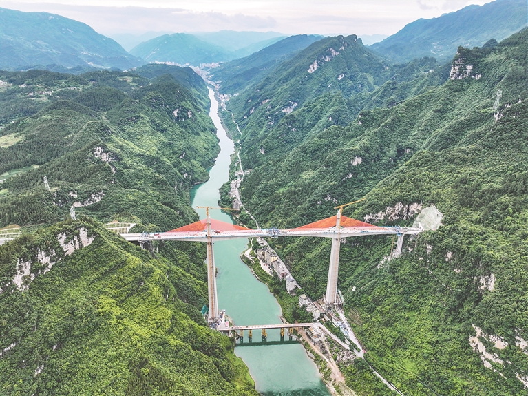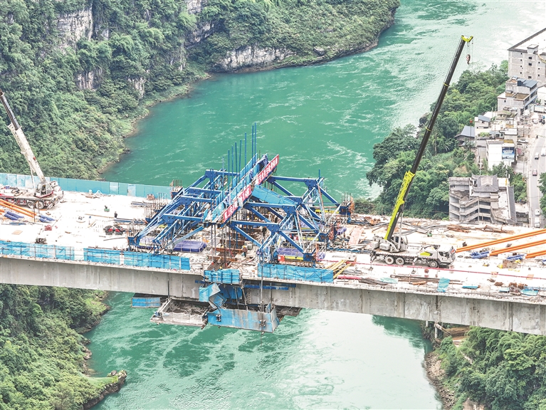 近日,位于重庆市彭水苗族土家族自治县境内的渝湘复线高速磨寨乌江特大桥进入最后一节2米连续梁浇筑施工作业,该桥即将实现全桥合龙。
