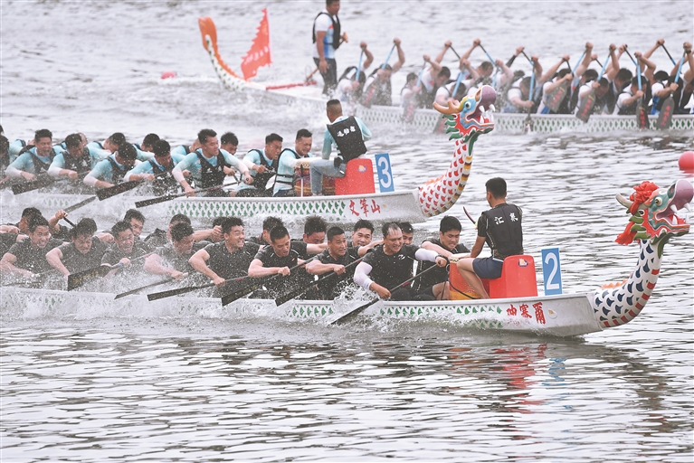 千百年赛龙舟,赛的是江河上同舟共济、奋勇争先,展现时代大潮中的上下求索。