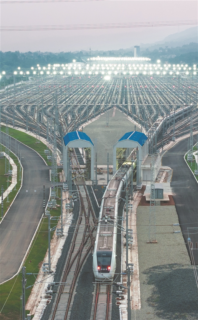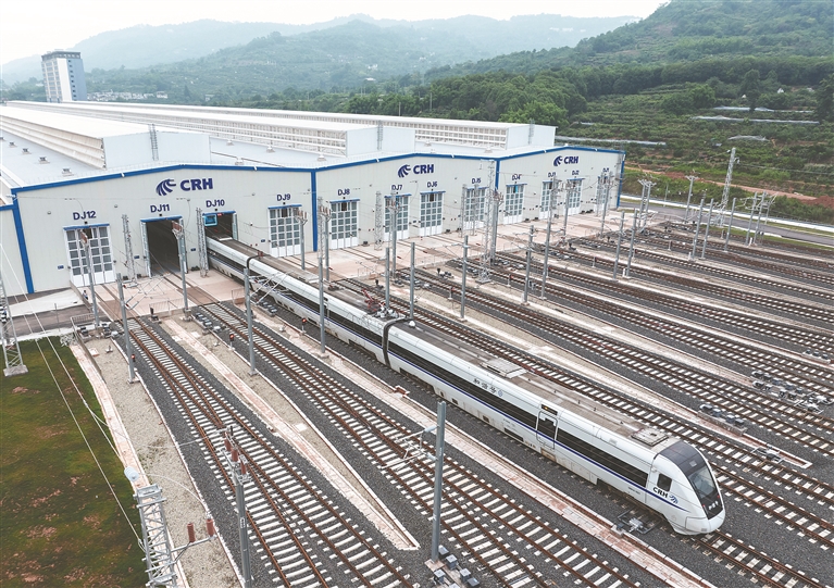 6月14日,随着首列动车组驶入天府动车所,西南地区最大动车所建成投用。