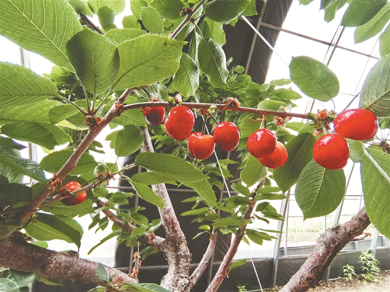 走进清河林业局有限公司果蔬标准化种植基地的寒地大樱桃种植棚,记者看到,一颗颗圆润饱满、色泽鲜艳的樱桃挂满了枝头。