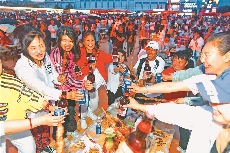 人们在美食节现场欢聚。本报记者 韩东贤摄