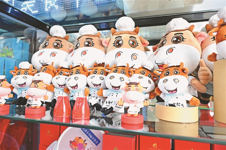 在齐齐哈尔烤肉文创展车里,有“大齐”元素的手办、胸针、冰箱贴、钥匙扣等近30款产品,不仅有寓意和美观的设计,还有精致的包装,每一款都让人爱不释手,每一款都是齐齐哈尔烤肉的“代言”。