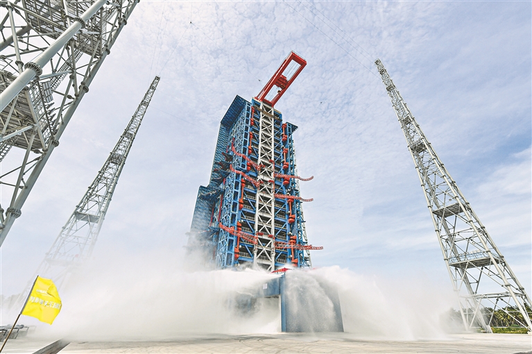 6月30日在海南商业航天发射场一号发射工位拍摄的喷水试验。