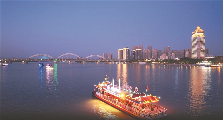 夜晚的松花江上,凉风习习、碧波荡漾,乘坐游船吹着江风欣赏沿途迷人的风光,成为哈尔滨市民及游客消暑纳凉的佳选。1日,哈尔滨市举办“滨江夜韵·夜游松花江”主题活动,精心打造的8艘亮化夜游船只,巧妙融合了灯光艺术、音乐、文化表演等元素,为市民和游客奉上独具特色的夜游体验。