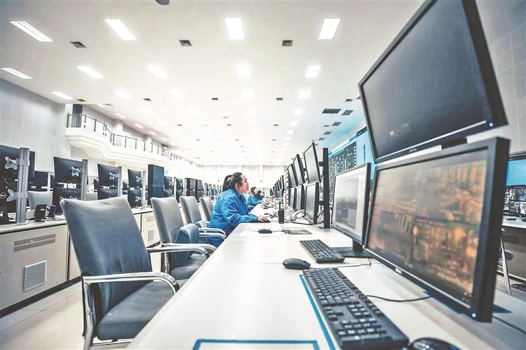 ⑤在大庆石化化工区中心控制室内,岗位员工正在精心监盘,调整运行参数。