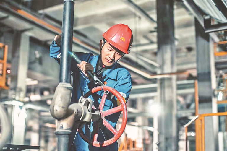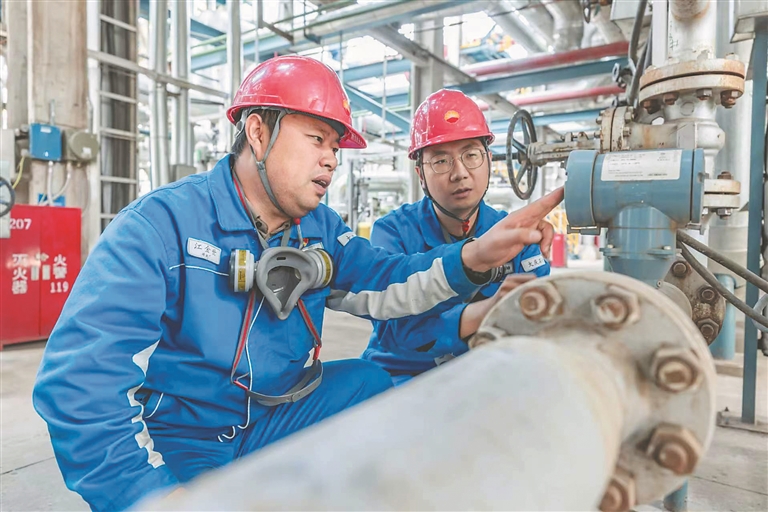 ③大庆石化一线员工通过调整阀门,确保装置平稳运行。