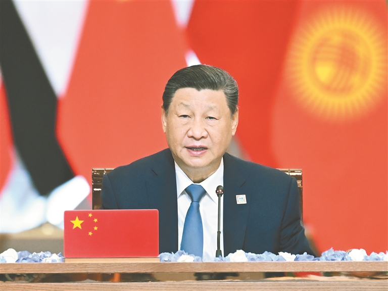 习近平指出,上海合作组织成立于世纪之交,当时冷战遗留的对立和割裂尚待弥合。本组织创始成员作出历史抉择,追求和平发展,致力于睦邻友好,构建新型国际关系,“上海精神”成为成员国共同的价值遵循和行动方针。上海合作组织成立23年后,成员国增加到10个,“上海合作组织大家庭”覆盖三大洲26个国家,伙伴越来越多,合作基础更加坚实。当前,世界百年变局加速演进,人类社会又一次站在历史的十字路口。上海合作组织站在历史正确一边,站在公平正义一边,对世界至关重要。