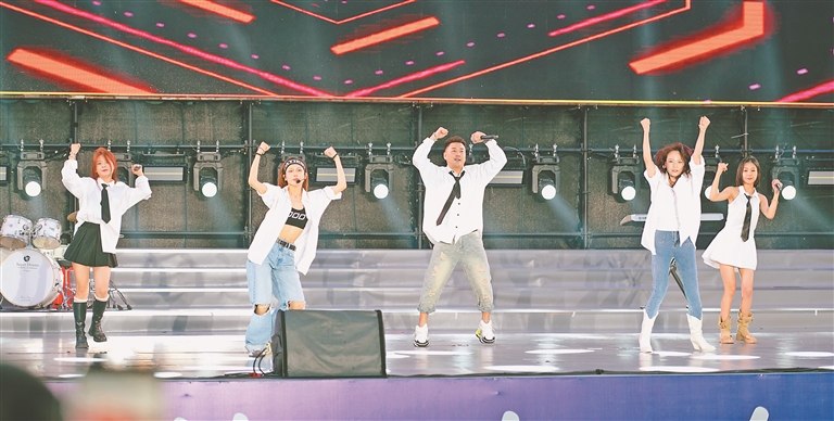 《北派》余音未散,动感十足的《你要跳舞吗》火辣开演。“你你你你要跳舞吗……”绚丽多彩的舞台上,青春气息十足的舞者全情演绎,带领观众劲歌热舞中邂逅冰城夏日激情。
