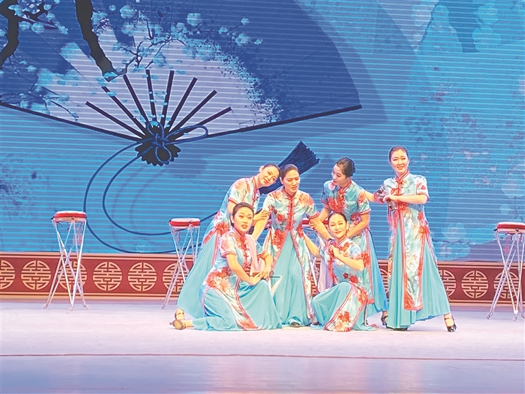 邱淑华(左三)领衔演出东北大鼓群口曲目《雁归来》。图片由受访者提供