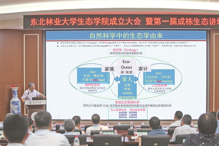 在生态学院成立大会上,东北林业大学校长宋文龙表示,东北林区是我国最大的天然林区,黑龙江省作为生态大省,林地面积2617万公顷,森林蓄积量22.4亿立方米,森林覆盖率高达47.3%,为生态学科的发展提供了广阔空间。生态学院将立足东北地区,面向全国和东北亚地区,以森林生态学为基础,以冻土生态学和生态系统监测与评估为特色,紧密围绕“森林生态学基础理论”“生态系统碳汇”“冻土生态学”“湿地生态学”“生态评估与修复”“生物多样性保育”等重要发展方向,开展创新性研究。生态学院将通过生态大数据与人工智能深度交叉融合,打造特色本科生核心课程,建设兼顾生态学基础理论与应用实践的本科生培养体系,全面培养学生创新应用能力,培养高水平交叉融合型人才,努力将生态学院建设成为新时代“产学研”一体化的创新型学院。