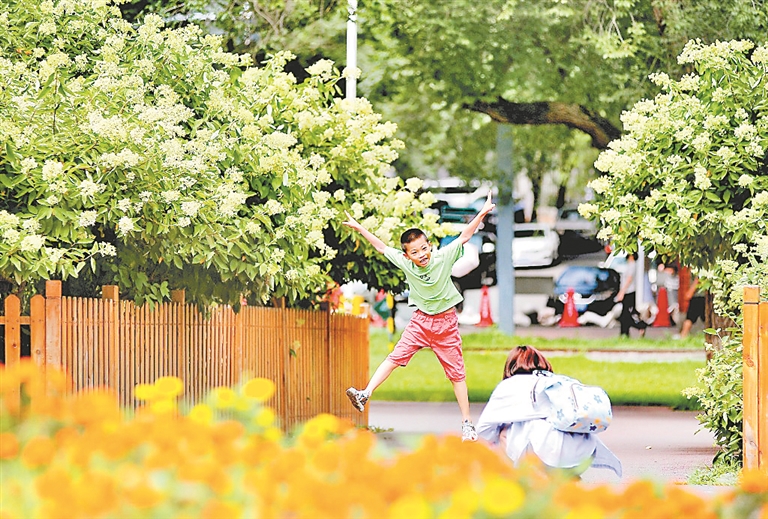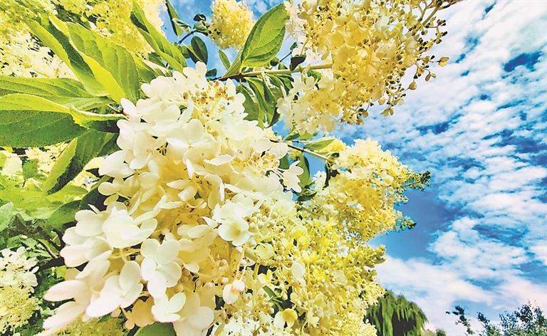 29日,哈尔滨市儿童公园内,数十株圆锥绣球正陆续开花。这些美丽的花朵为夏日冰城再添一道风景,吸引了许多游客前来观看、拍照。