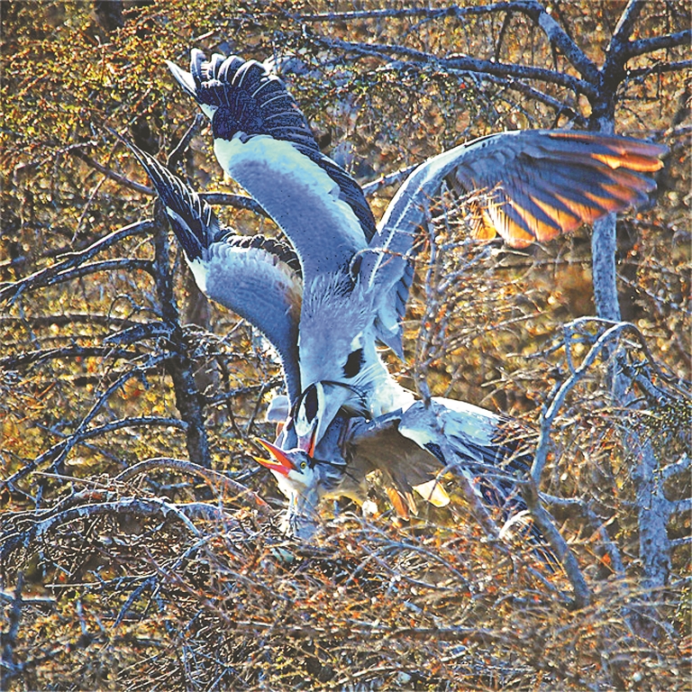 在嘟噜河省级自然保护区内,有一个四面环水的小岛,自从20年前这里人工种植了落叶松树林,越来越多的鹭类候鸟就陆续来此繁衍生息,如今,万余只鹭类候鸟在这里筑巢安家。每当清晨,鸟儿齐声欢歌,堪称鸟类的天堂,被人们誉为“苍鹭岛”……