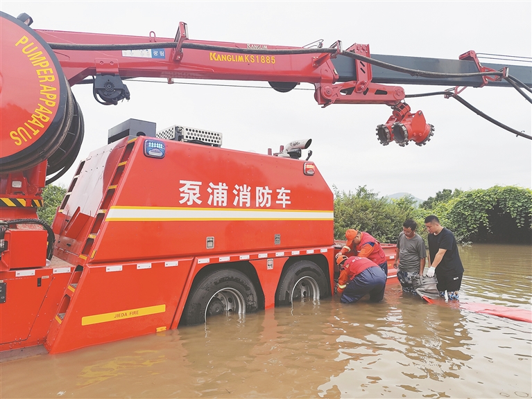 牡丹江市消防救援支队进行排涝。图片由牡丹江市消防救援支队提供