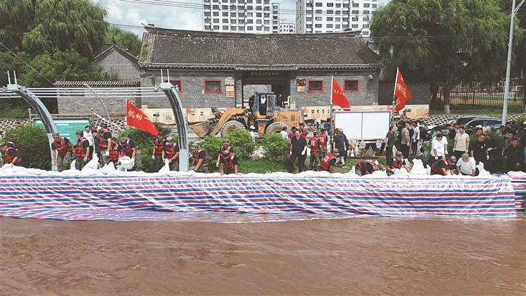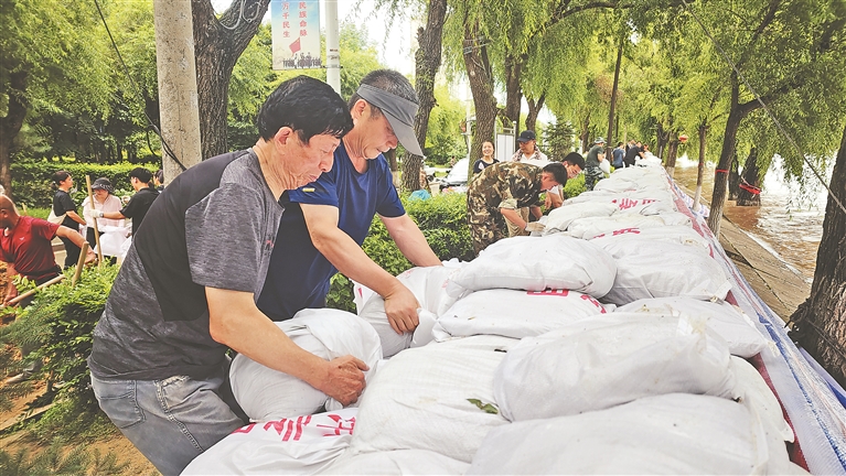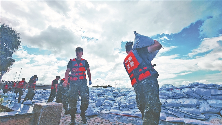 武警官兵搬运沙袋。图片除署名外均由 黄伟 本报记者 刘晓云摄