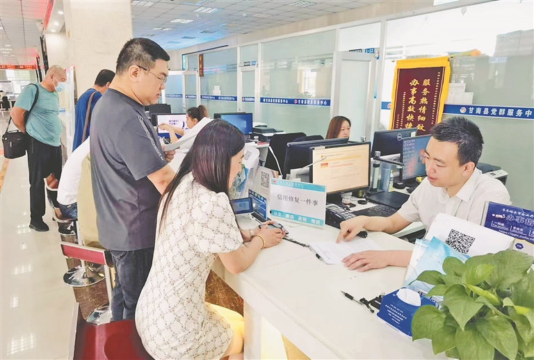 政务大厅信用综合服务窗口开展“信用修复一件事”工作。本报记者 孙昊摄