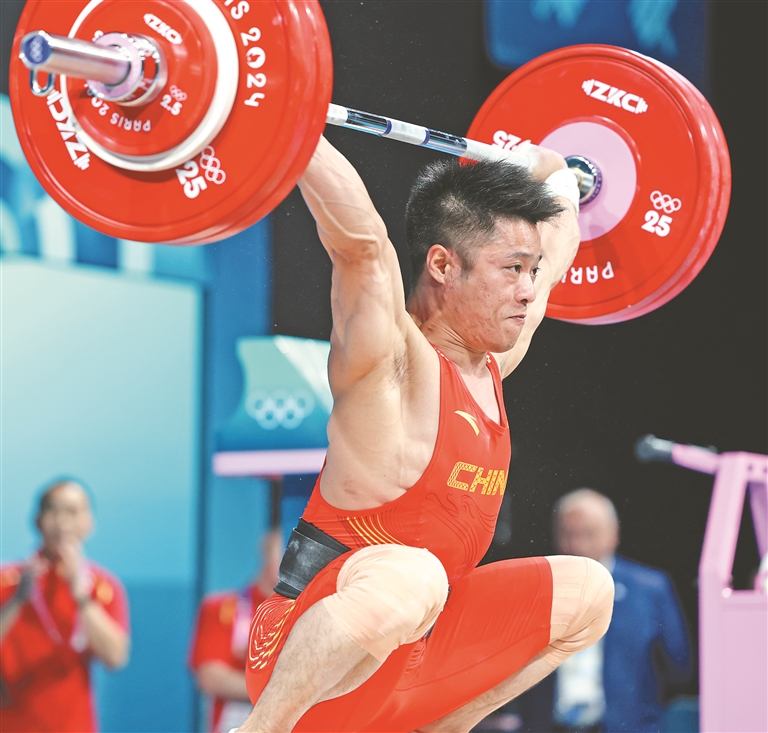 本报综合消息 北京时间8月7日晚,巴黎奥运会举重项目产生了首枚金牌,在南巴黎竞技场举行的举重男子61公斤级决赛中,中国选手李发彬在抓举中举起了打破奥运会纪录的143公斤,在挺举中举起167公斤,以310公斤的总成绩排在第一,成功卫冕冠军,为中国代表团夺得本届奥运会第23枚金牌。
