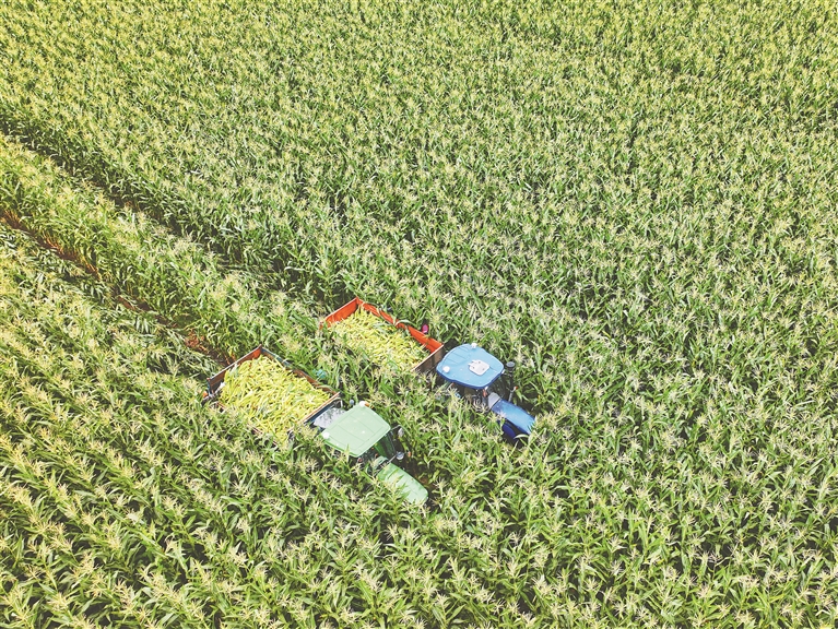 近日,北大荒集团各地的鲜食玉米陆续收获上市。鲜食玉米以“鲜”取胜,以快为“鲜”,生长周期短,比大田作物提前1个月收获,可实现早上市、早变现。不少农场有限公司加大力度构建从种植到采收、加工、销售的完整鲜食玉米产业链。