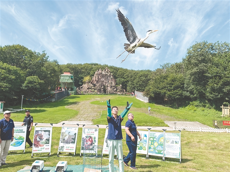本报15日讯(刘晓密 记者刘瑞)15日,第二个全国生态日当天,黑龙江省北方森林动物园野生动物救护中心将收容救治的三只野生鸟类放归自然。