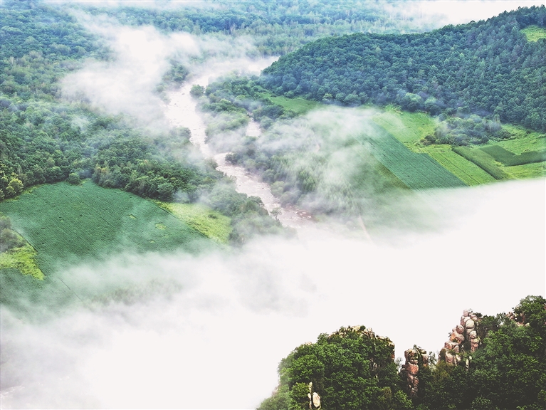 晨雾缭绕的山峰。单忠宇摄
