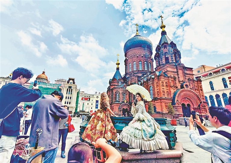①索菲亚教堂广场旅拍。本报记者 苏强摄
