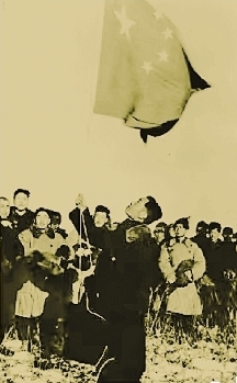 图①:1954年12月21日,友谊农场场址奠基升旗仪式,升旗者为场长王操犁同志。