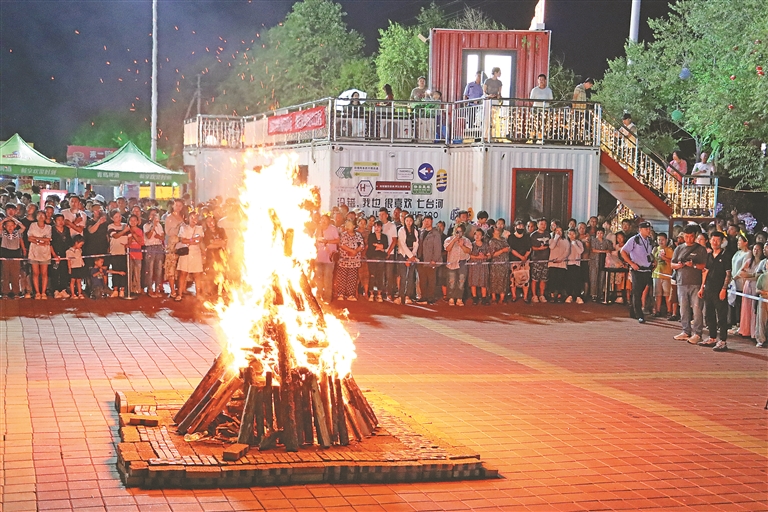 本报讯(记者赵宇清)为释放夜间消费潜力、激发城市活力,自7月27日起,七台河市桃山区政府每周六晚都会在万宝音乐创意部落,为游客和市民举办篝火晚会,参与人数超3万人。