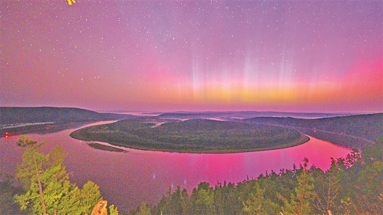 北极光辉映龙江第一湾。安石春摄