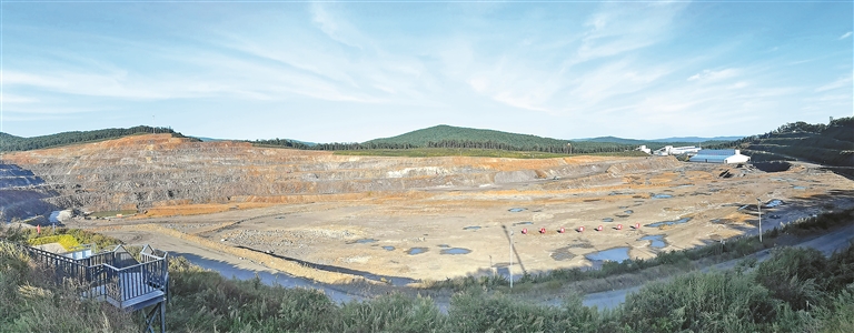 远处,正在开采的中国五矿集团(黑龙江)石墨产业有限公司(以下简称“五矿石墨”)云山石墨矿,层叠有序,纯电动矿卡和装载机在整个大型露天矿坑的对比下,像玩具车一样在层叠盘旋的梯形矿道上移动;旁边的山体斜坡上,披满了花草,种植了树木,郁郁葱葱,“建设世界一流绿色低碳智能矿山”几个大字赫然醒目、让人振奋……