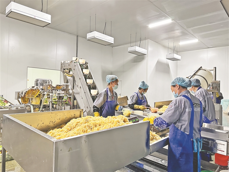 人工去皮、气泡冲洗、去根、切丝……走进企业生产车间,多个发酵桶内装着二次发酵中的酸菜,一旁的包装车间,机械手正在有序地将切割好的酸菜装袋打包。“包装环节一定要注意比较容易出现的封口不严、空袋、装袋时水分的控制等问题。产品中如有其他杂物,大家一定要细心挑干净。”斤添慢腌食品有限公司酸菜生产厂厂长李秀明在包装线旁,严格把控每一个步骤的细节。
