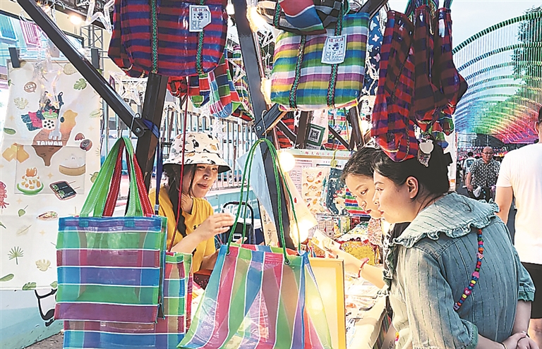 “尔滨”夜市游人如织,哈尔滨师大夜市“台湾好食”的摊位前,摊位布置别致,工作人员甜美的声音响起,满是台湾风情。地道的台湾美食、精美的文创产品,再搭配上一口正宗的台湾腔调,引得食客驻足。