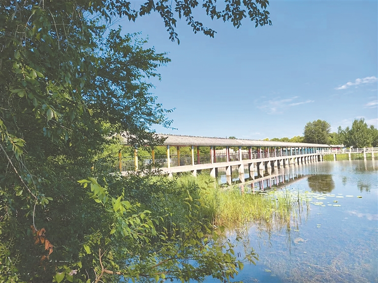 史料记载,《玛纳斯》作为中华民族三大史诗之一,讲述了柯尔克孜族民族英雄玛纳斯和他的子孙一共八代人为了民族的独立和振兴而不断抗争的故事。对着黑龙岗就是《玛纳斯》水墨画长廊的南进口,这是一条古香古色曲折蜿蜒的长廊,宛如一条纽带。长廊棚顶有一段段间隔,间隔的横槛上都有一幅《玛纳斯》史诗水墨画,每幅画下面都有文字说明。沿着文化长廊漫步,似乎走进了时间的隧道。游客们在长廊中驻足,品味着那些故事和历史。