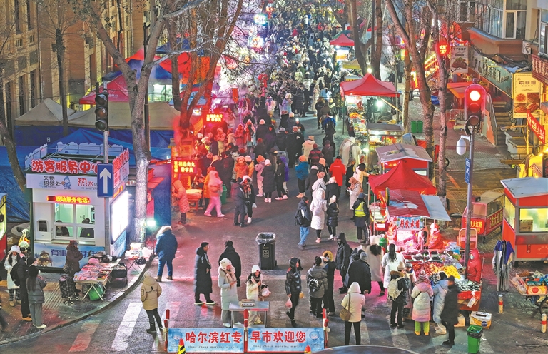 哈尔滨冰雪旅游爆火,红专街早市成热门打卡地。