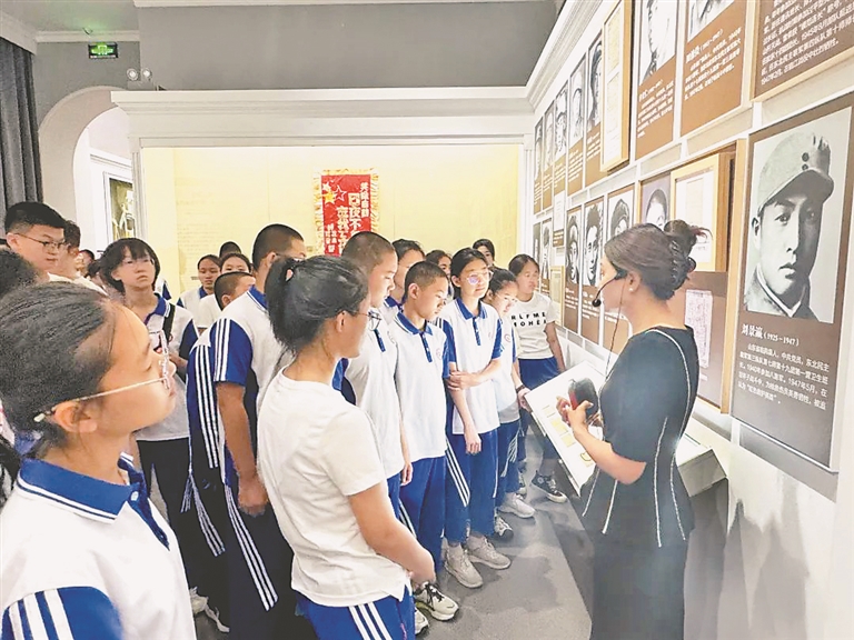 红色研学活动中,同学们在东北烈士纪念馆认真聆听讲解。