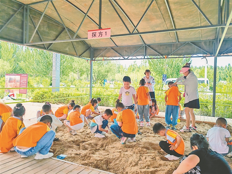 孩子们参与“小小考古家”活动,沉浸式体验模拟考古。