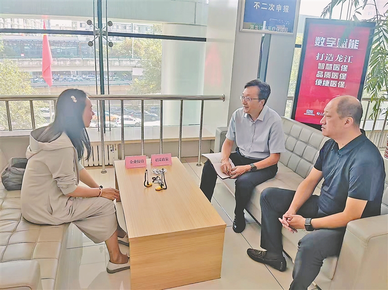 医保企业接待日,工作人员现场为企业代表解答政策。