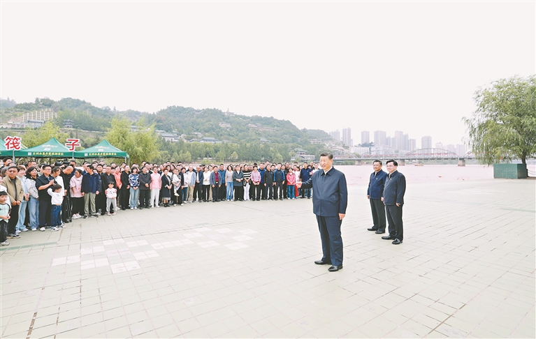9月10日至13日,中共中央总书记、国家主席、中央军委主席习近平在甘肃考察。这是11日下午,习近平在黄河兰州中山桥段考察时,同在场的干部群众亲切交流。新华社记者 王晔摄