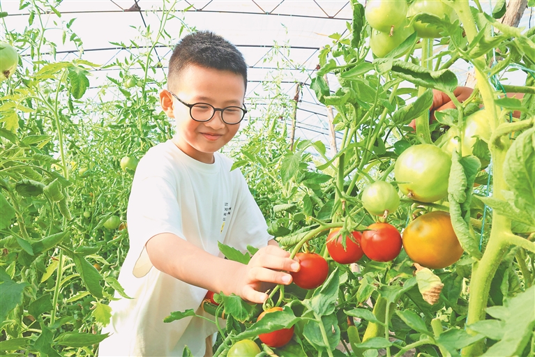 五颜六色结满枝头的小柿子与体验田园乐趣的游人,构成了一道美丽的风景线。欣赏着原生态的鲜果与美景,亲手采摘令人垂涎欲滴的草莓、挑选顶花带刺的黄瓜,边吃边领略现代农业的魅力,欣赏美丽的田园风光,真可谓乐在其中。