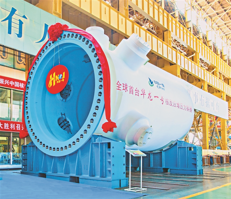 全球首台“华龙一号”福清5号核反应堆压力容器。