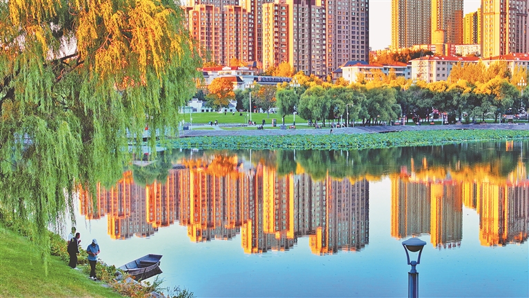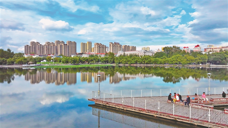 水为天之镜,镜映湖边影。置身于鹤岗的公园,一池池清澈的水面,宛如一面面天空之镜,映射出美轮美奂的城市影像,也映射出煤城鹤岗转型发展的魅力。