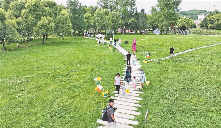 将废弃的矿山打造成以矿山文化为主题的矿山公园;将塌陷区建成供市民休闲娱乐的体育公园;在中国电影诞生地建设电影广场;将老旧小区拆迁后改建为花海;在居民聚居地建设口袋公园;将小区内外的荒地、垃圾场改造成绿地、休闲场地……连续的“大动作”“大手笔”,彻底改变了“晴天一身灰、雨天一身泥”的状况,实现了300米见绿,500米见园。也正是鹤岗全市上下坚持生态修复的决心和努力,才有了如今“公园里的家”。