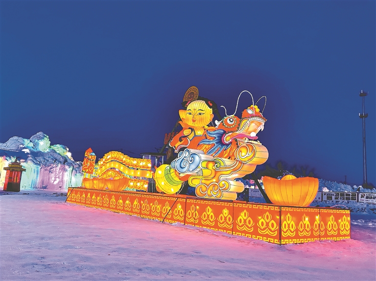灯彩如何与冰雪链接?彭士学兴奋地说:“我在彭家大院投资建设了兰西大冰川,将扎制的北极熊灯彩、企鹅灯彩放入冰川中,与冰景融为一体,浑然天成,成为了游客拍照的网红打卡地。”截至目前,彭家大院成功举办了6届冰雪花灯游园会,吸引国内外游客参观游览。经过这些年的创新发展,彭家大院成为了兰西县文旅宣传的文化名片。