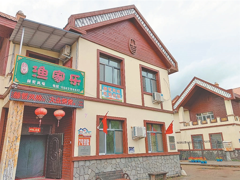 四排赫哲族村“渔家乐”餐饮民宿综合体。本报记者 崔立东摄