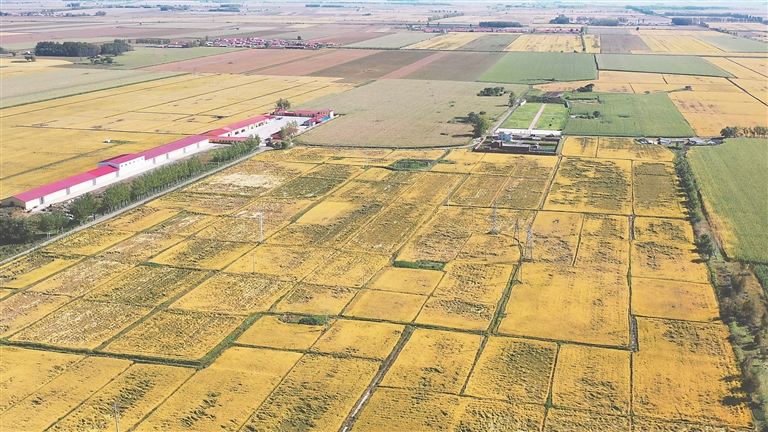 走进富锦市富锦镇新发村禧和家庭农场,一簇簇饱满的稻穗铺满了稻田,金黄的稻谷颗粒饱满,沉甸甸的稻穗压弯了腰。伴随着轰隆隆的机器声,水稻收割机在稻田里来回穿梭,收割、脱粒、粉碎稻秆,一气呵成,金黄的稻谷被“尽收囊中”。
