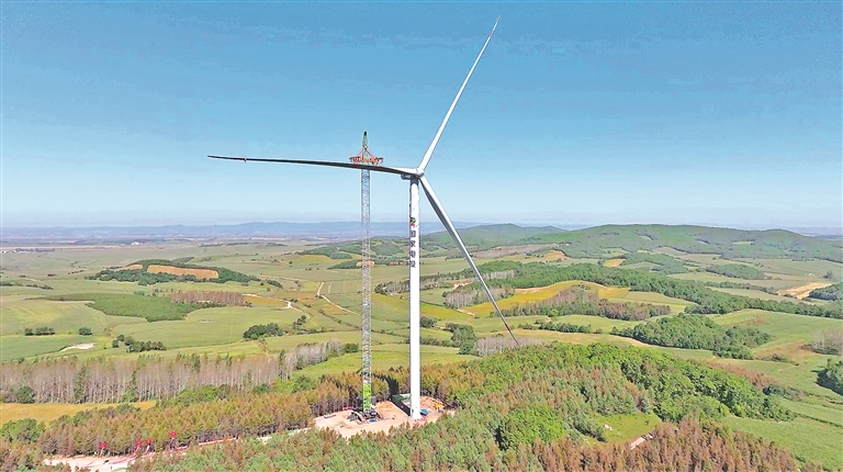 本报讯(黄新星 记者孙伟民)日前,密山市柳毛湖200兆瓦风电项目首台风机成功吊装。