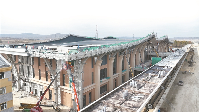 沈千宝向记者介绍,这个节假日,除了他和贾连金,伊春西站项目建设者全员在岗,现场200多名建设者守在施工现场,加速推进工程步伐。“伊春施工‘黄金期’已不多,国庆期间,我们要继续加快施工节奏,力争完成站房外幕墙龙骨焊接,在10月中旬完成外幕墙铝板安装,实现站房外立面亮相的目标。”沈千宝说。