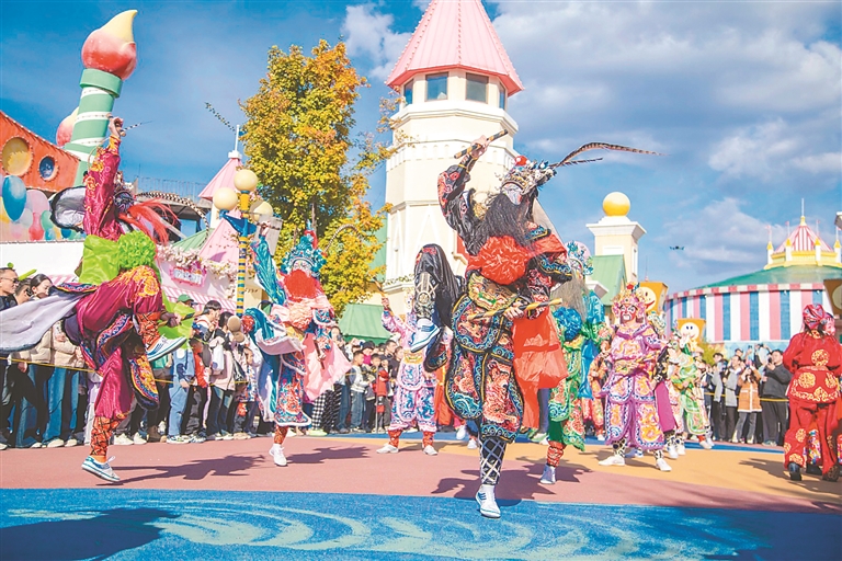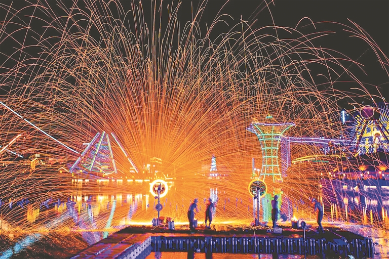 索菲亚广场推出“梦幻光影秀”,夜色中,“巨龙”腾飞,在声、光、电的演绎下,游客沉浸在浪漫的梦幻光影视觉盛宴中;冰雪大世界梦想大舞台,连续七天众星云集、劲歌热舞,璀璨烟花秀、震撼的无人机表演、浪漫的非遗打铁花,让冰城的夜更加迷人;哈尔滨融创乐园引入潮汕地区英歌舞,鼓槌落下,全场沸腾。