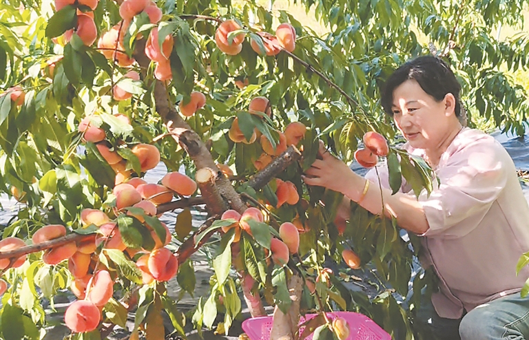 在发展特色农业种植的过程中,阜宁镇建新村与南寒村合作,在原有的4栋温室大棚中,种植新引进的400多棵蟠桃树,种植面积约2000平方米,经过半年的辛勤培育,成活率达到了95%。眼下,蟠桃树结满了粉嫩嫩的桃子,一阵阵清甜的桃儿香扑鼻而来,让人不禁垂涎欲滴,现日采摘量约50余斤。近日,阜宁镇还举办了第二届蟠桃采摘节,当天有千余名市民及游客被蟠桃吸引,步入桃园里快乐采摘。